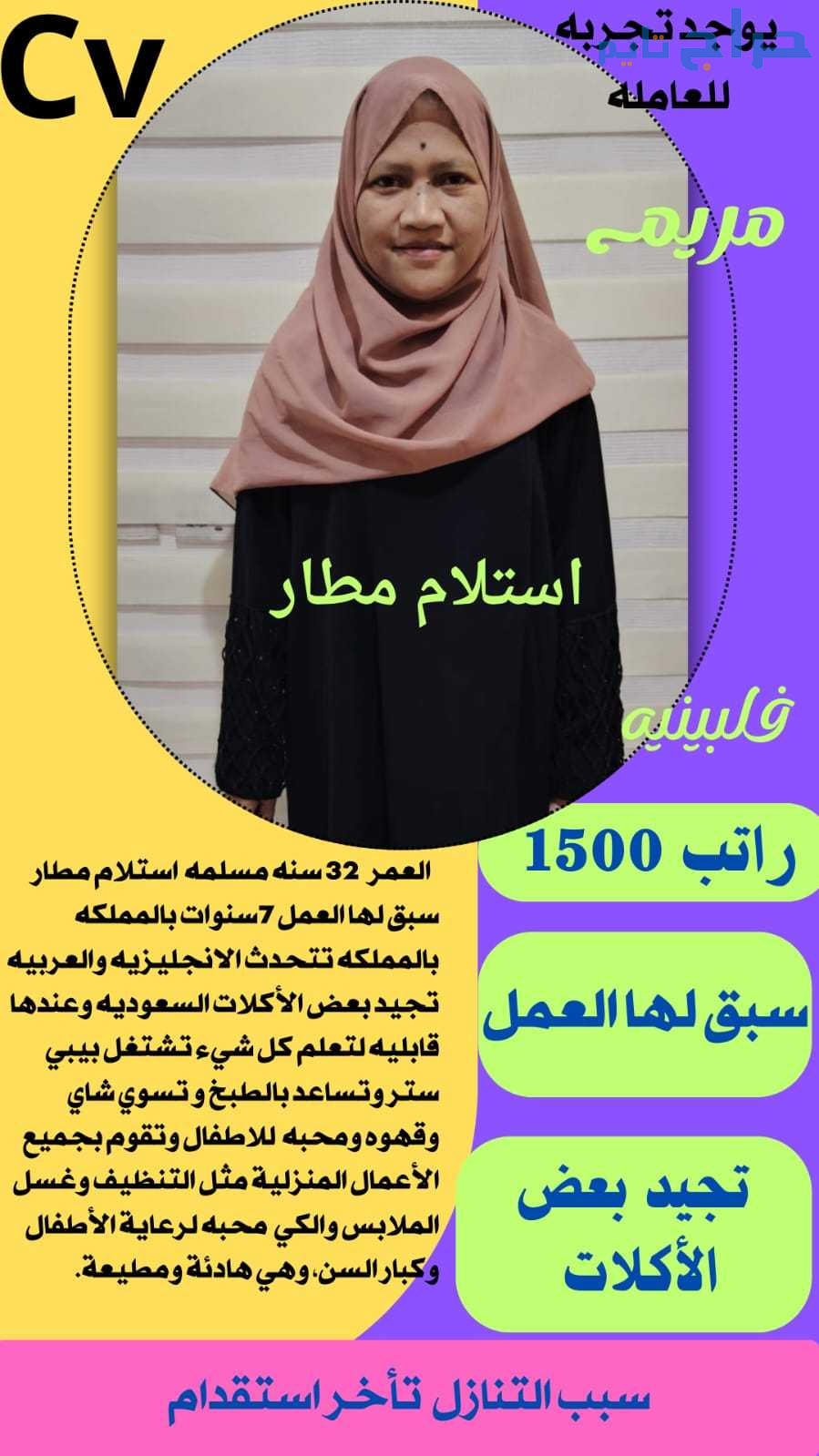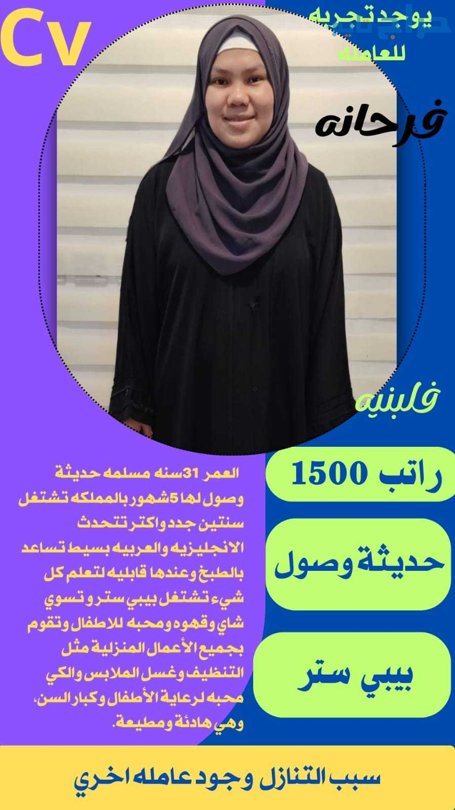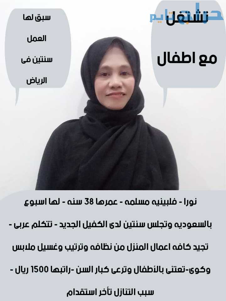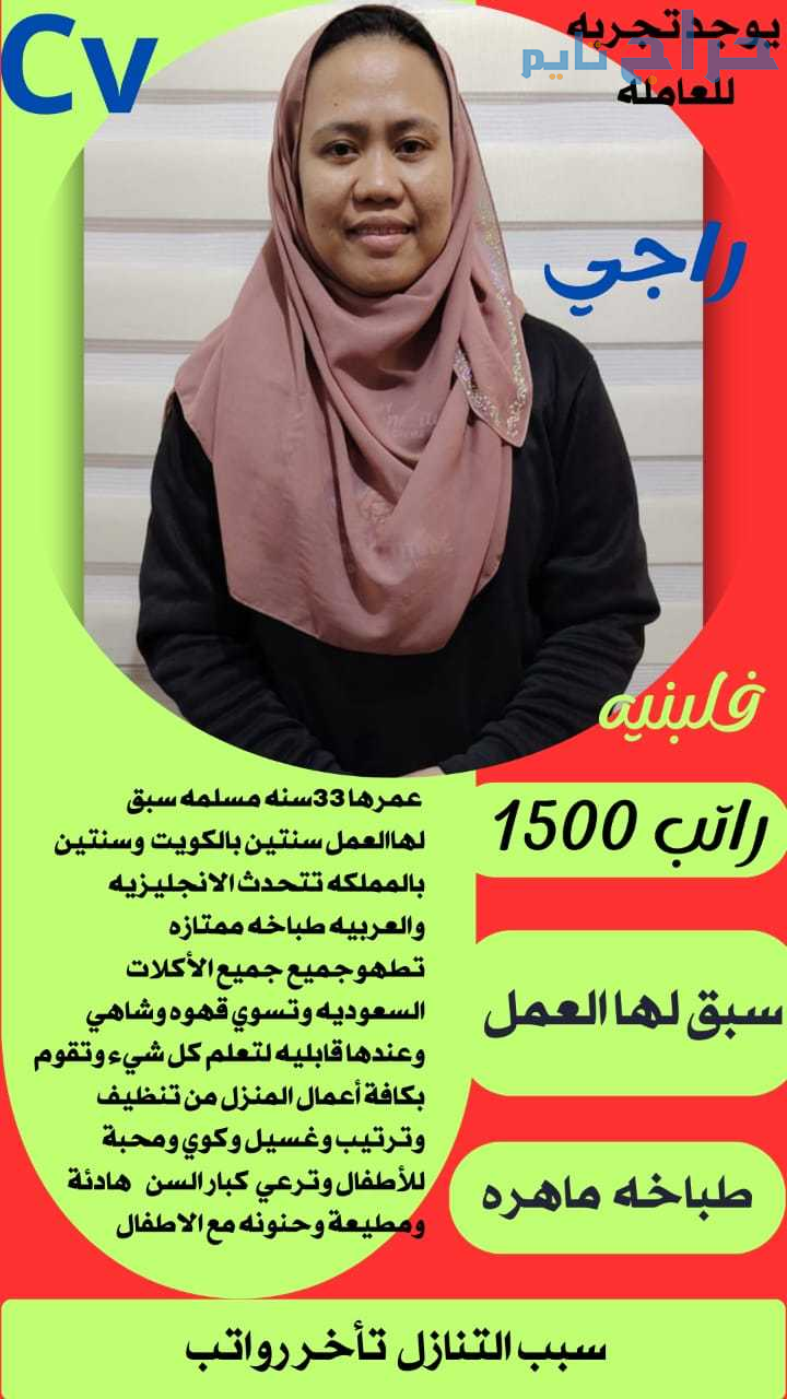 متوفر عماله منزليه وطباخات ومرافقين لكبار السن وعاملات نظافه ومربيات اطفال وكوافيرات وسائقين ومتاح التجربه لكل أنحاء المملكه والتجربة خير برهان 🇸🇦🇸🇦 تواصل علي الواتساب لإرسال السير الذاتيه واتساب 0568519087....