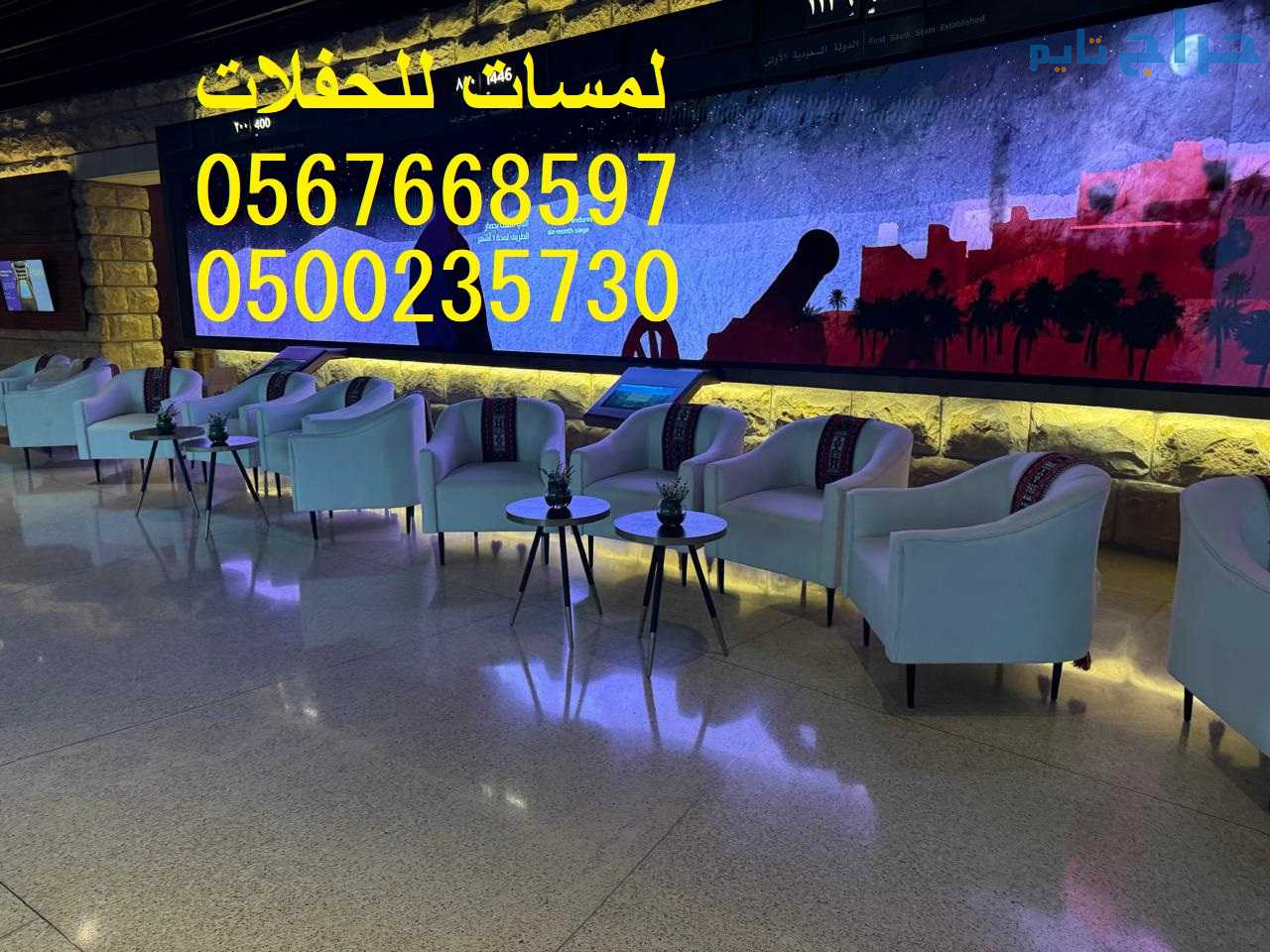 ?مؤسسة لمسات للحفلات تقدم: تجهيز حفلات,تزين قاعات افراح,ايجار جميع انواع المجالس, جلسات ارضيه تاجير طاولات كوكتيل متوفرة بالأنواع : مضيئة , تلبيسة , حديد مع خشب , بللور , تاجير كنب جلد , تاجيرمكيفات خيام متوسطةللايجار, خيام كبيرةللايجار, ايجار كنب ملكي خدمات تنظيم الاحتفالات ,كنب جلد ابيض كراسي فندقية , طاولات طعام وبوفيه , طاولات اجتماعات تزين قاعات,ايجار جميع انواع المجالس, جلسات شالكي الوان مختلفه ايجار خيام,كنب شعبي,ايجار كنب ملكي, ايجار تراثيات تاجير دفايات فيصليه وعاديه وتاجير خيام شفافه وجلسات مودرن تنظيم وتأجير لوازم المناسبات والاحتفالات العامه والخاصه اختار ما يناسبك من الصور للتواصل معنا على الارقام التالية: 8597 766 056 730 235 00 05